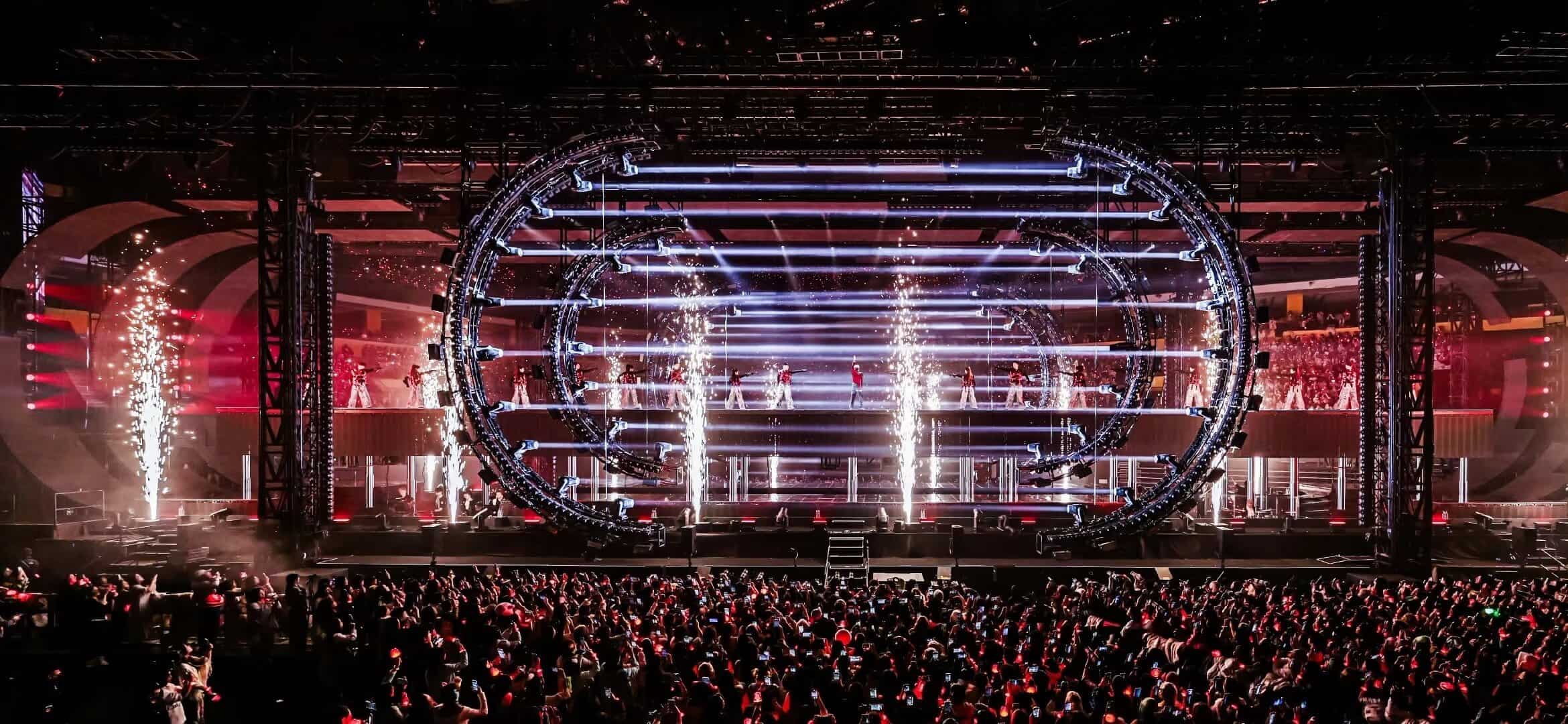 A quick backstage peek at our delivered New Year’s Eve touring stage. Our team delivered the CNC-driven rigging, motorised ceiling LED screens and dynamic displays.