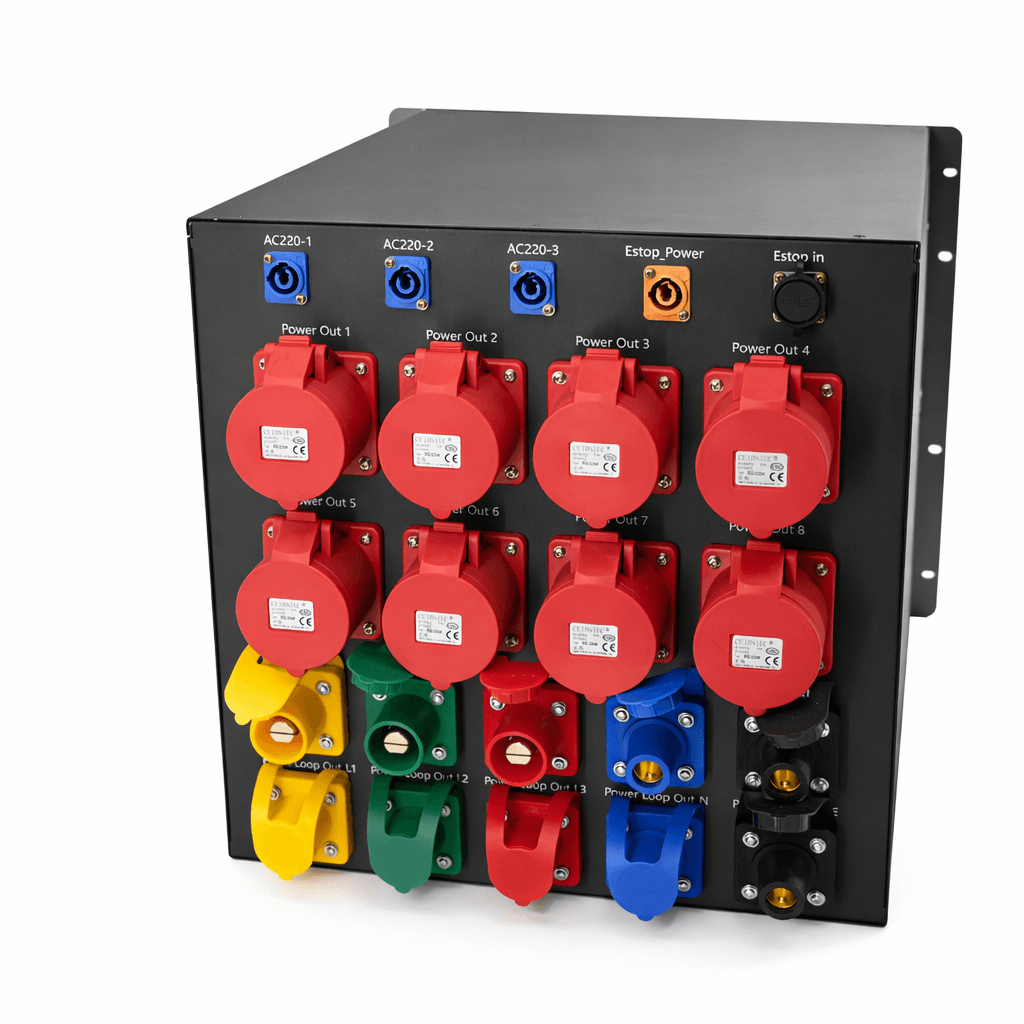 Black Warrior Automation Systems를 위한 강력한 전원 관리1. 전문가급 전력 분배균형 잡힌 부하 관리: 위상 불균형을 방지합니다계단형 디자인: 대규모 설치에 확장 가능2. 향상된 안전성이중 레벨 보호:자기 열 차단기비상 차단 스위치시각적 표시기: 위상 상태 LED3. 투어 준비 완료 구조플라이트 케이스 옵션:50mm 폼 패딩IP54 등급 커넥터